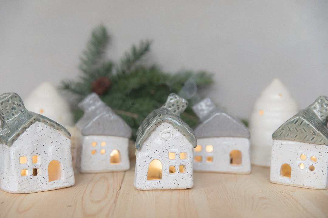 Each one has a glossy finish and a whimsical, handmade feel that makes your holiday décor feel cozy and one-of-a-kind. Great for mantels, shelves, or adding a little personality to your Christmas village.